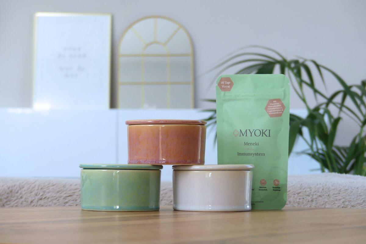 Spare 5 €, wenn du deine Kapseln im Set mit unserer dekorativen Vorratsdose kaufst. Diese eignet sich hervorragend als stilvolles Design-Element für dein Zuhause und zugleich als eine qualitätserhaltende Aufbewahrung für deine Meneki Kapseln. So integrierst du ein schönes Ritual in deine tägliche Nahrungsergänzung.